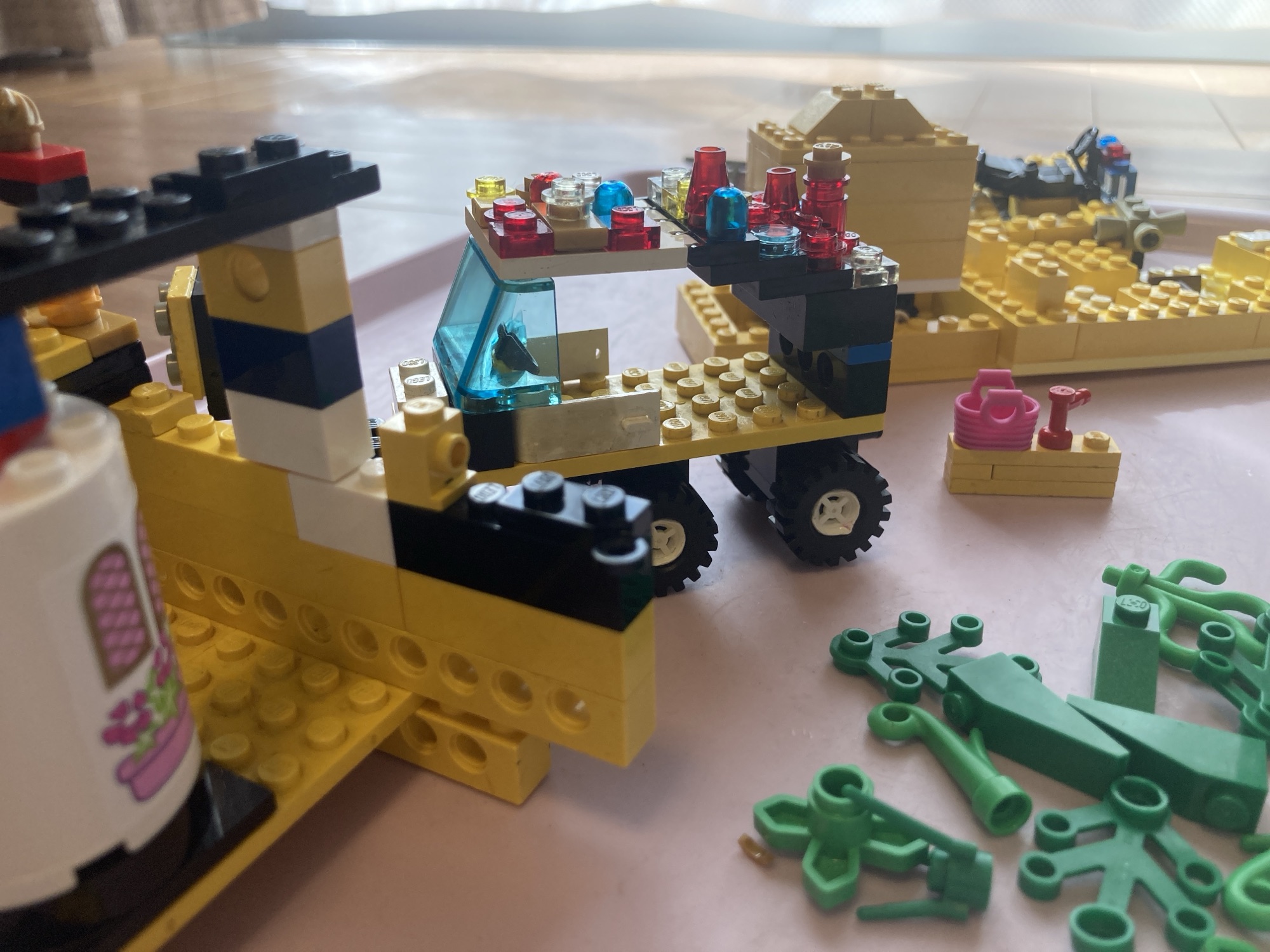 因みにうちにあるのは主人が5歳の誕生日におばあちゃんから買ってもらったレゴブロック。なんでも捨てる断捨離魔の主人が、バケツに入れて(追記:主人はおばあちゃんにもらった箱のまま、袋に入れて保存していたけど、数十年ぶりに封を解いた時、ボロボロになっていた紙の箱を泣く泣く捨て、家にあった蓋付きバケツに入れた。との事。とても重要なところですので、修正いたします。)密封して大事に保管していたもの。部品が壊れてたり、無くなってたり、勿論色々あるんだけど、残ってるものでも十分に楽しい。
